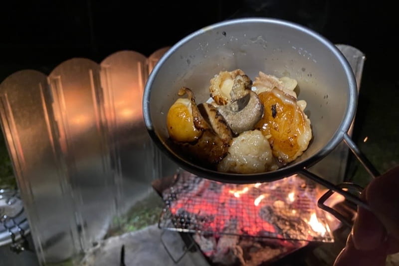 火おこし後、火が作れた所で料理開始。