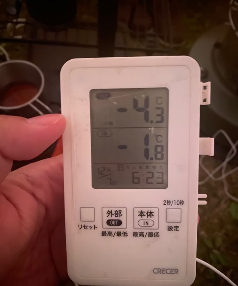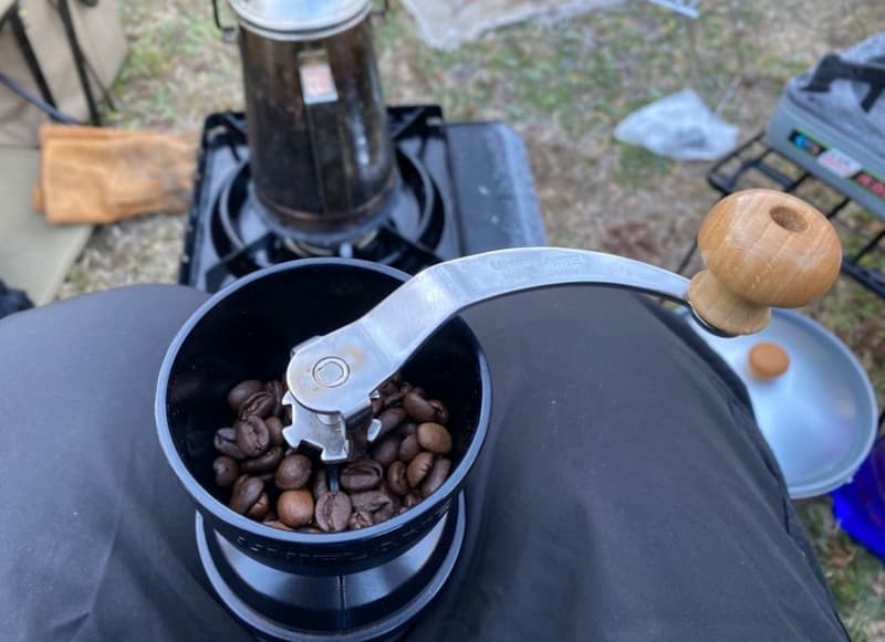 凍える寒さの中、コーヒー豆を挽いて淹れる一杯は格別。